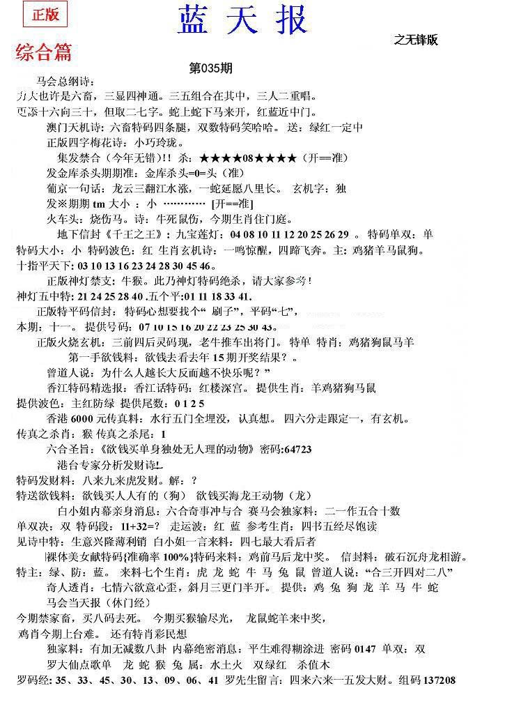 | 035期〖⑥码〗43 32 04 25 06 41 |