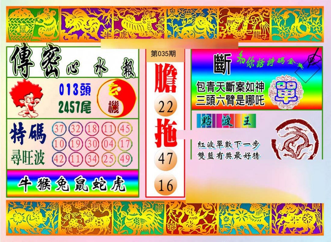 035期:复式连肖【羊猴龙猪狗兔】 |